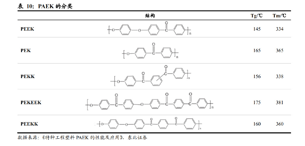 2.5.1. 聚芳醚酮電性能、耐磨性以及耐熱性優異,聚醚醚酮為其主要品種